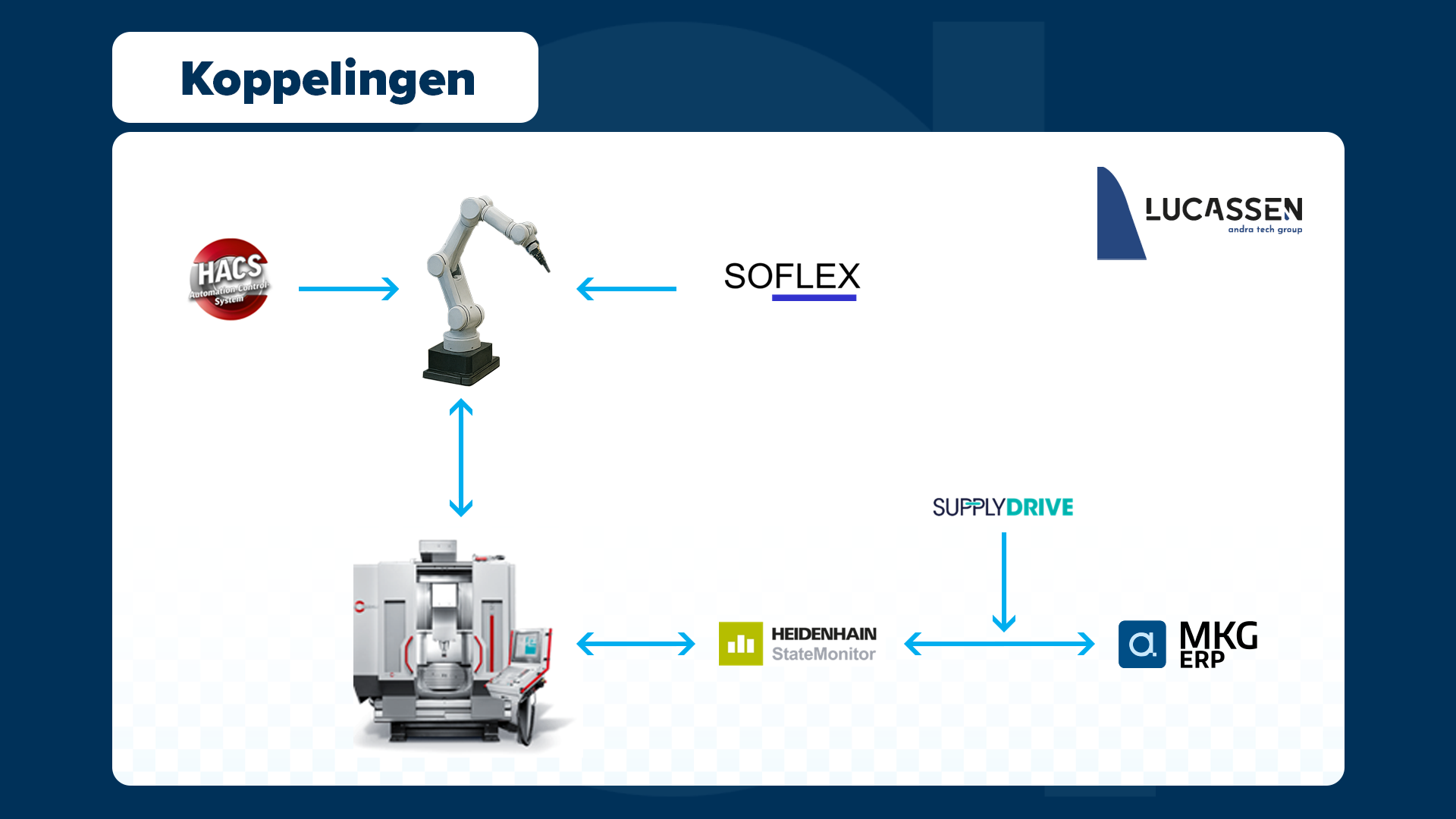Met een directe koppeling tussen de fabriek, HEIDENHAIN StateMonitor en het ERP-systeem van MKG heeft Lucassen in Sittard een belangrijke stap gezet richting een volledig gedigitaliseerde productieomgeving. De koppeling zoals Lucassen die nu operationeel heeft, is de eerste in Nederland. De live connectie zorgt voor meer transparantie, efficiëntere processen en nauwkeuriger inzicht in machine- en orderdata. Tegelijkertijd worden operators minder belast met administratieve handelingen.